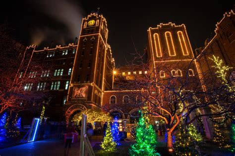 - The entire grounds are decked out in lights, sampling booths are spread out throughout the area, the clydesdale stable is open for visitors and you can warm up and roast s’mores over an open fire.
